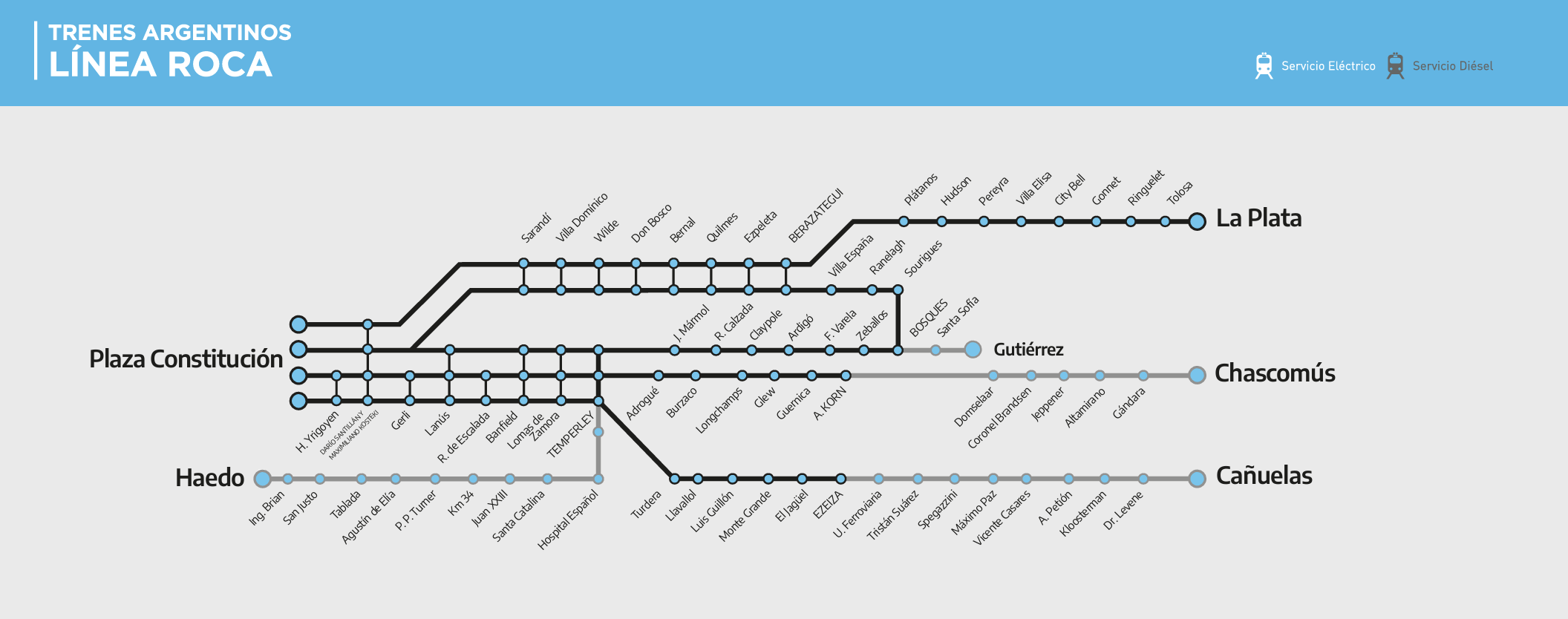 Ramales y estaciones del Tren Roca